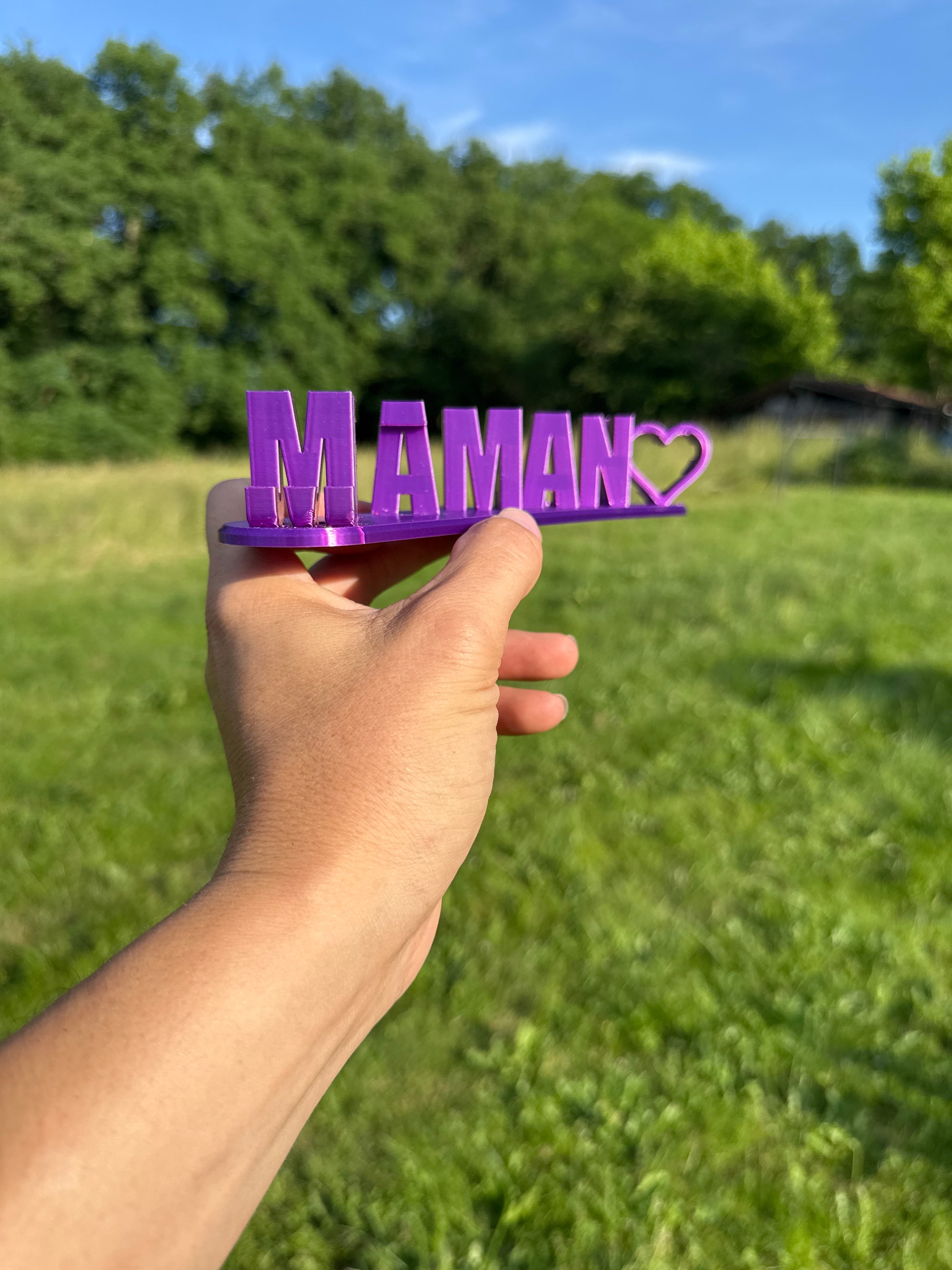 Ce digramme 3D "JE T’AIME" / "MAMAN" est le moyen parfait de lui rappeler combien elle compte pour toi, sans attendre une occasion spéciale. Que ce soit pour la Fête des Mères, Noel , un anniversaire ou juste pour lui faire plaisir, cette petite attention trouvera forcément une place dans son cœur (et sur son étagère).