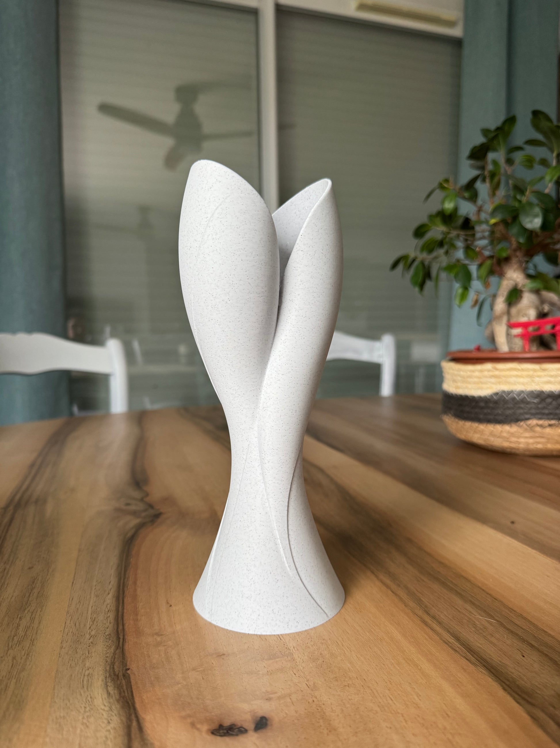 Imprimée en 3D avec un filament effet céramique, Tulipe offre un rendu mat, minéral et légèrement texturé, proche de la pierre ou de la faïence. Chaque pièce révèle de fines nuances uniques, signature d’un objet fabriqué avec soin.